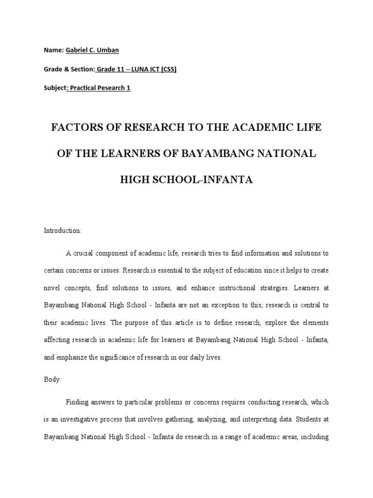 affecting research in academic life for learners at Bayambang National High School - Infanta,