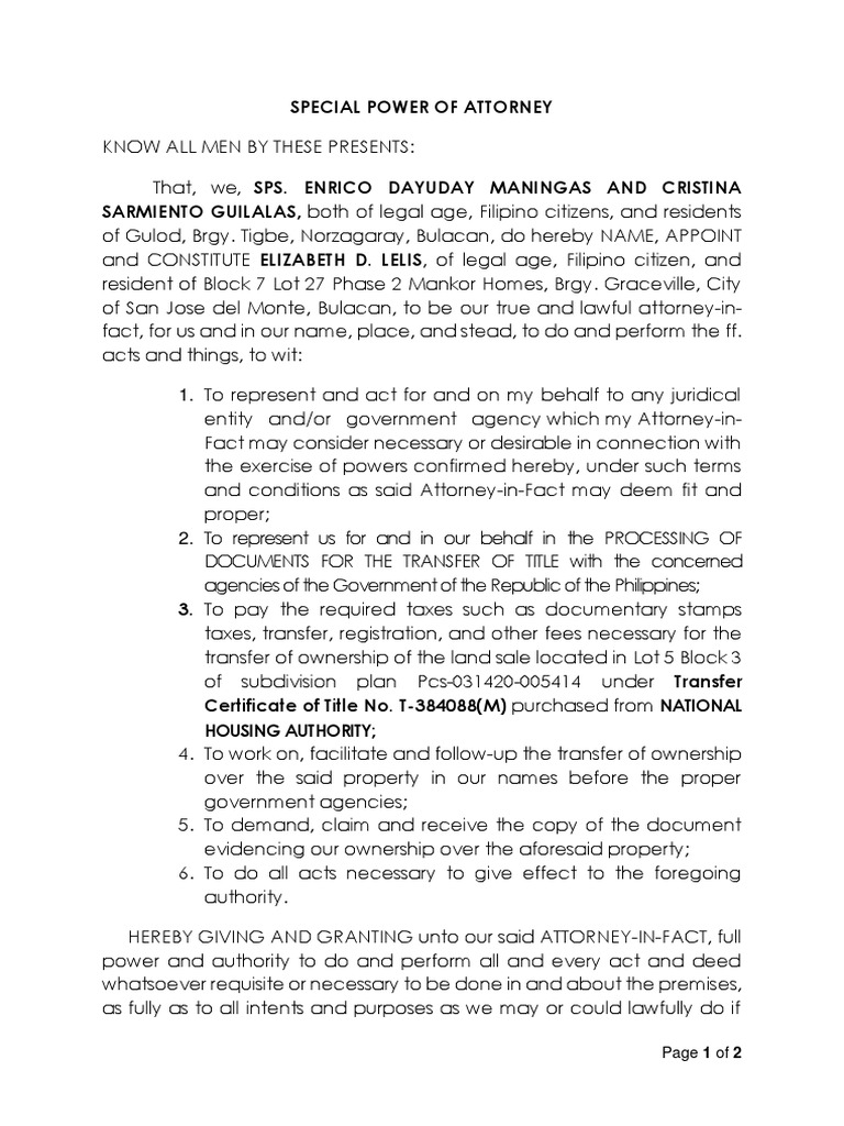 of San Jose del Monte, Bulacan, to be our true and lawful attorney-in-