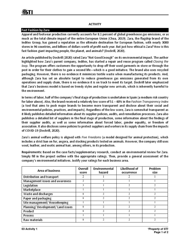 Requirements: Based on the case facts/supplementary research, conduct an environmental review for Zara.