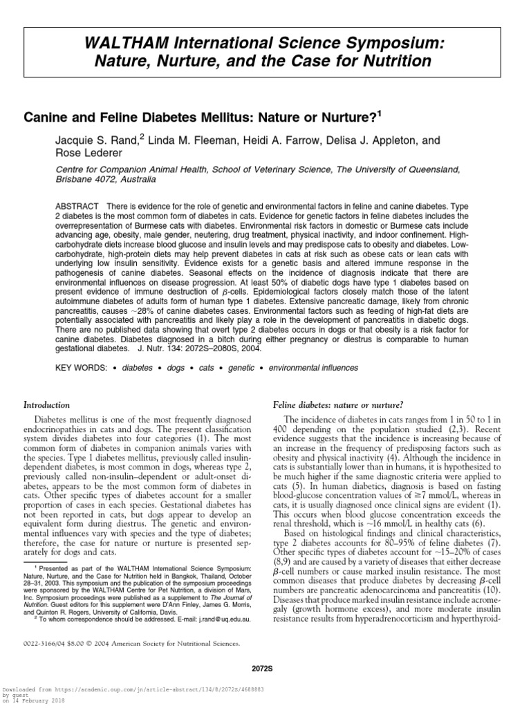 four times the rate in domestic cats in Australia, with 1 in 50 Overt diabetes is the result of b-cell failure. It is