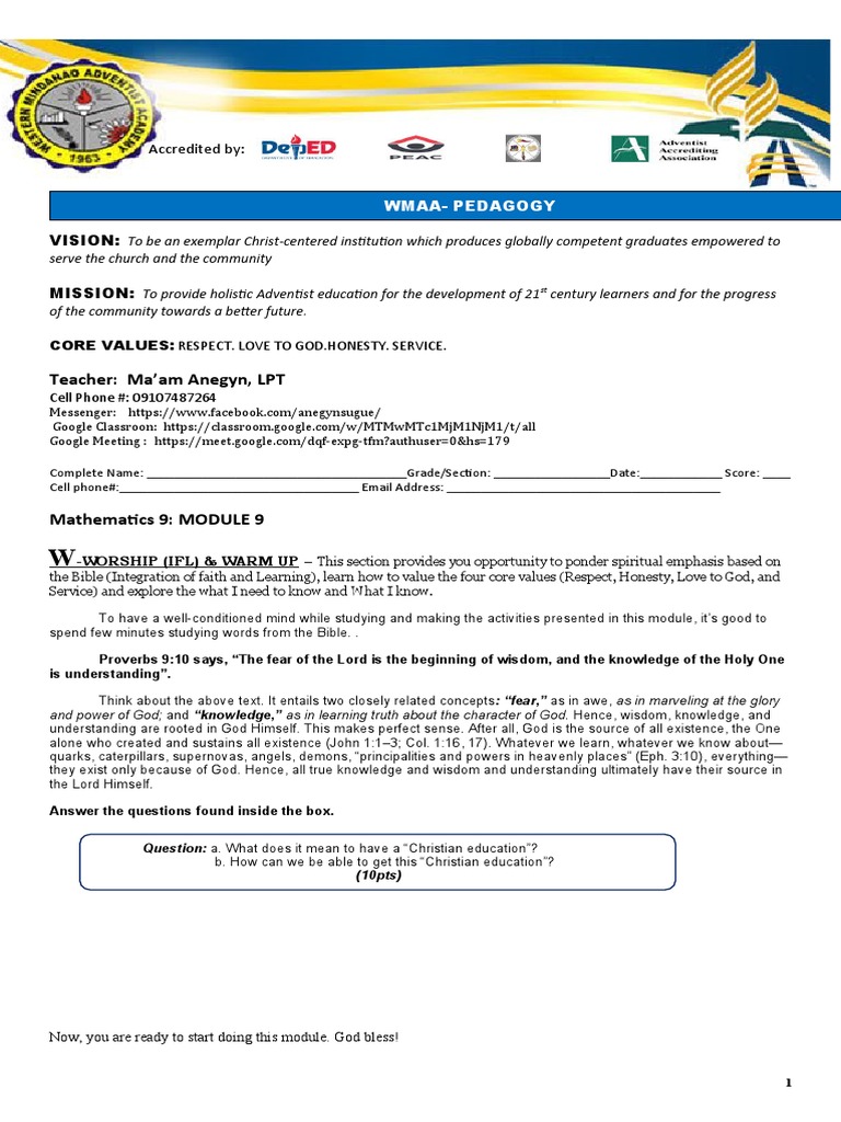 MISSION: To provide holistic Adventist education for the development of 21 st century learners and for the progress