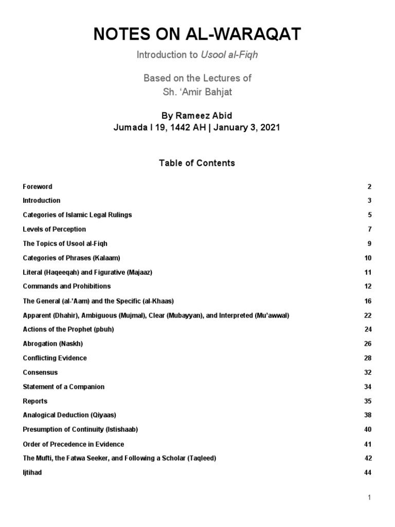 Intro to Usool al-Fiqh Notes