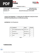 S.No. Distance of Reading of micrometer eyepiece Width of
