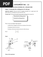 Objective: To determine the resolving power of telescope and to verify the Rayleigh’s