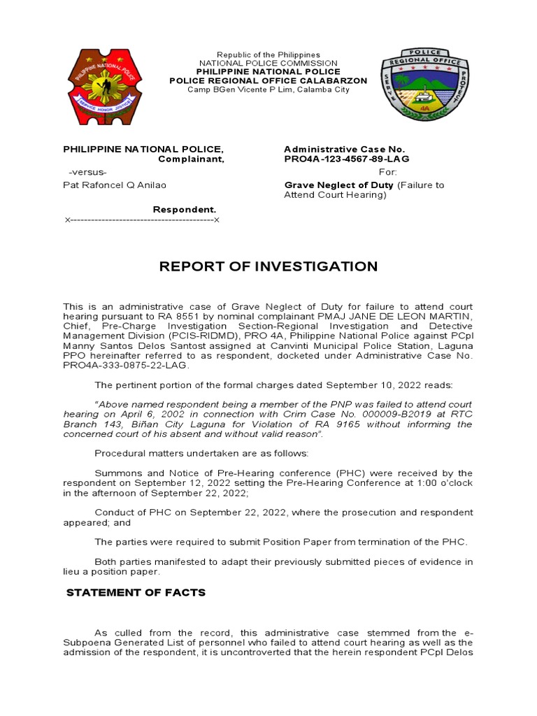 Pat Rafoncel Q Anilao Grave Neglect of Duty (Failure to