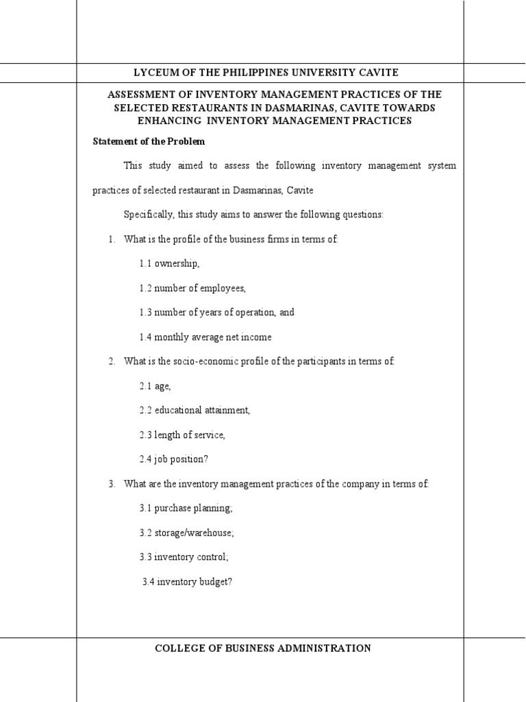 ASSESSMENT OF INVENTORY MANAGEMENT PRACTICES OF THE