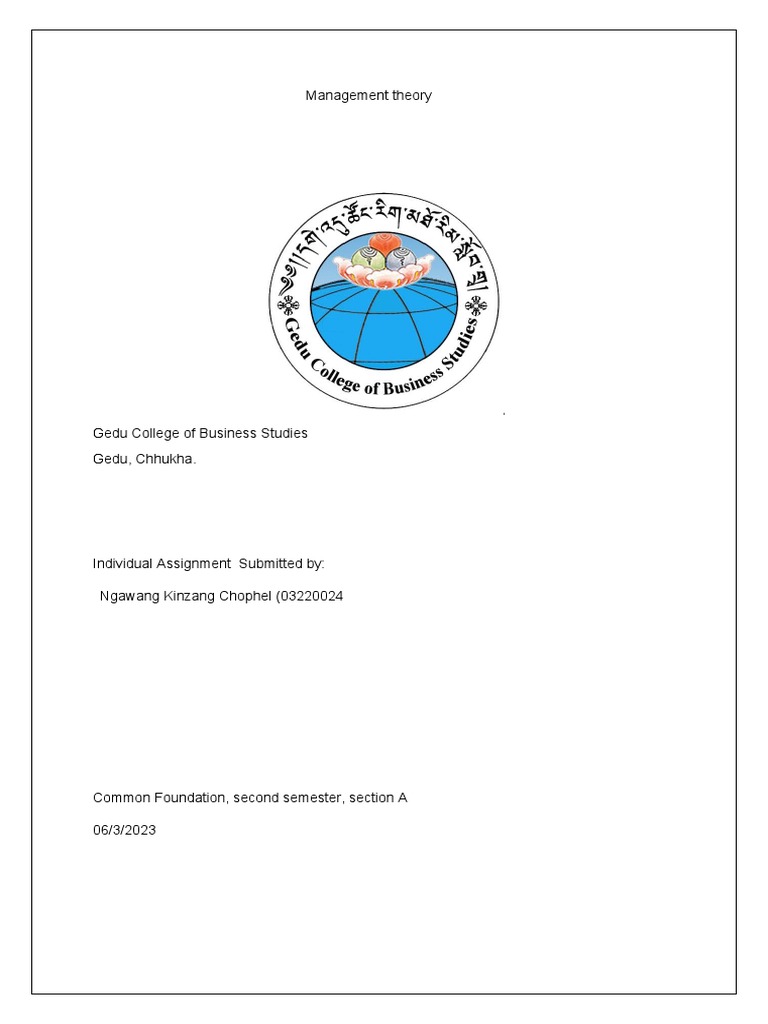 Module Title: Management Theory and Module Tutor: Mrs. Sonam Dema