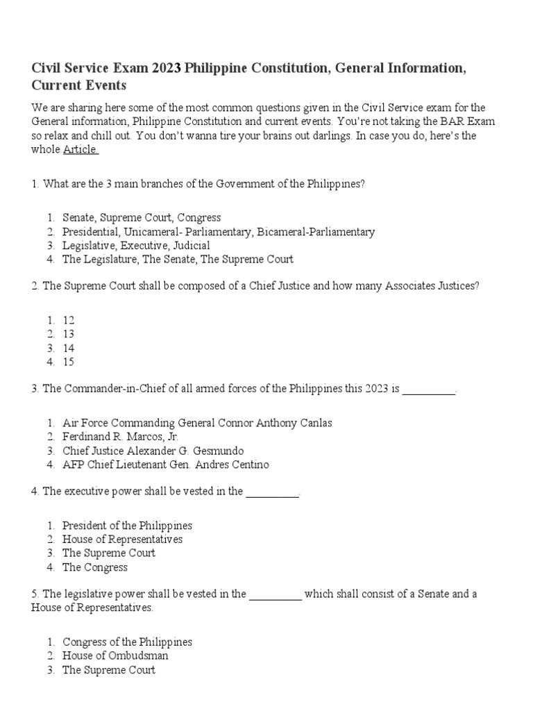 General information, Philippine Constitution and current events. You’re not taking the BAR Exam
