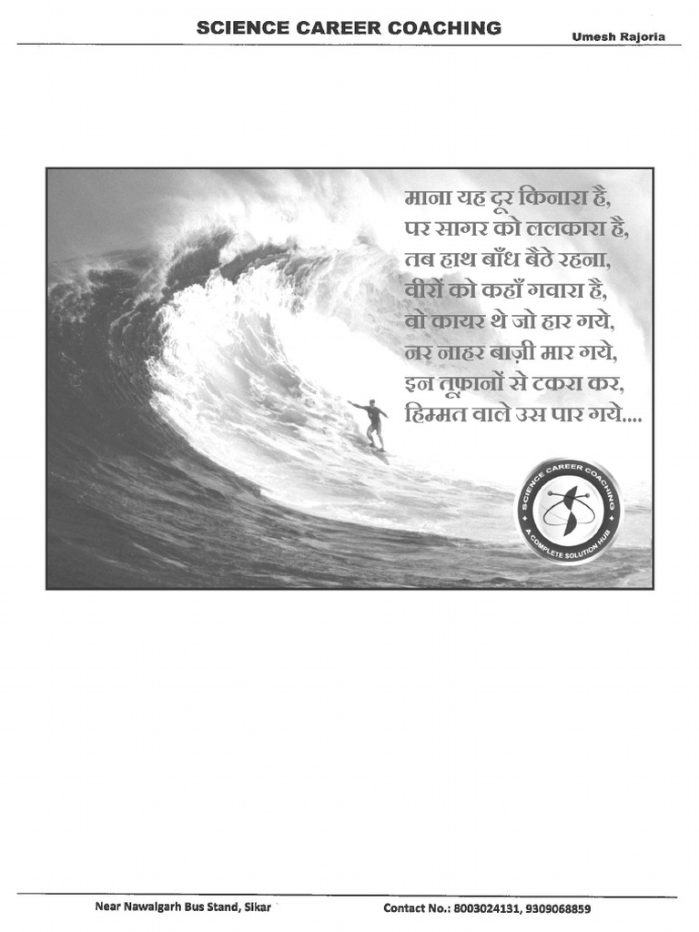 Near Nawalgarh Bus Stand, Sikar Contact No.: 8003024131, 9309068859 (14)SCIENCE CAREER COACHING