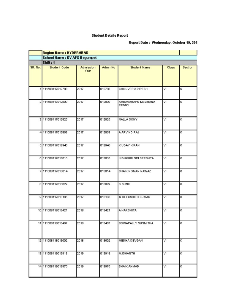 Hyderabad Student Details Report