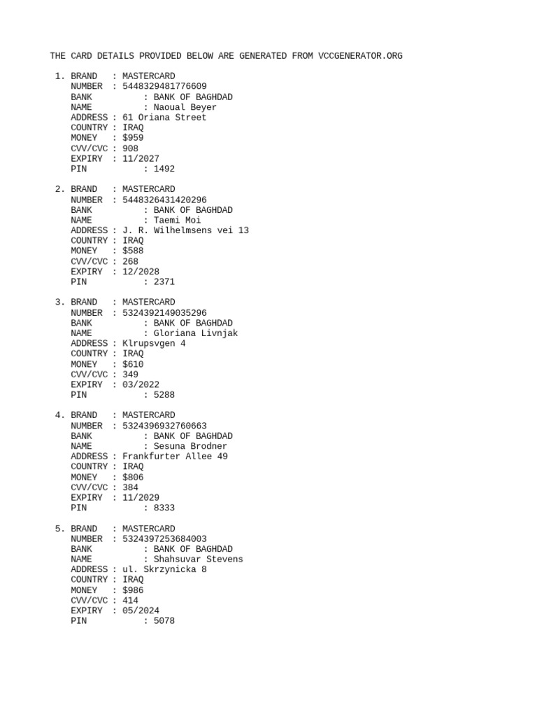 THE CARD DETAILS PROVIDED BELOW ARE GENERATED FROM VCCGENERATOR.