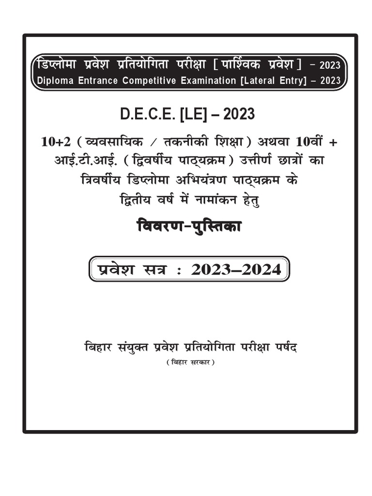 lEcfU/r ikB~;Øeksa esa izos'k gsrq p;u] fMIyksek izos'k izfr;ksfxrk ijh{kk ¹ikf'Zod izos'kº&2023 [Diploma Entrance Competitive