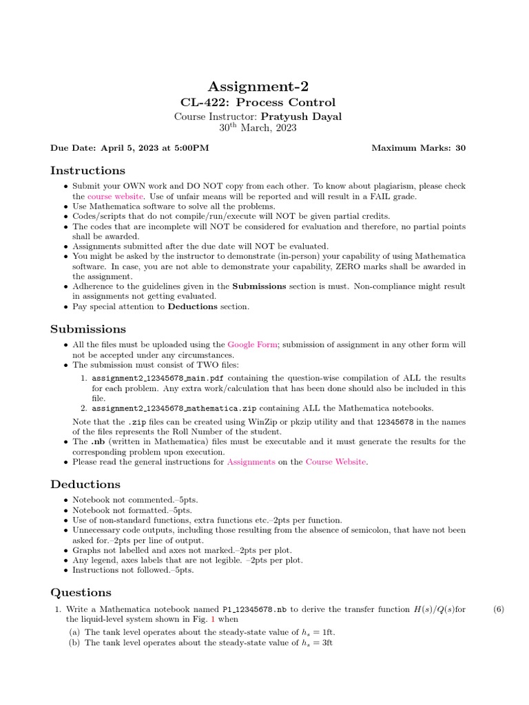 1. Write a Mathematica notebook named P1 [Link] to derive the transfer function H(s)/Q(s)for (6)