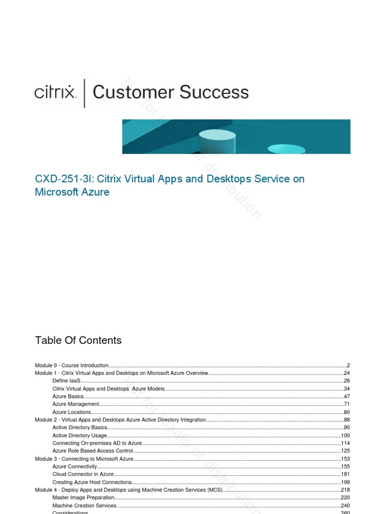 Not For Resale or Distribution: C XD-251-3I: Citrix Virtual Apps and Desktops Service On Microsoft Azure