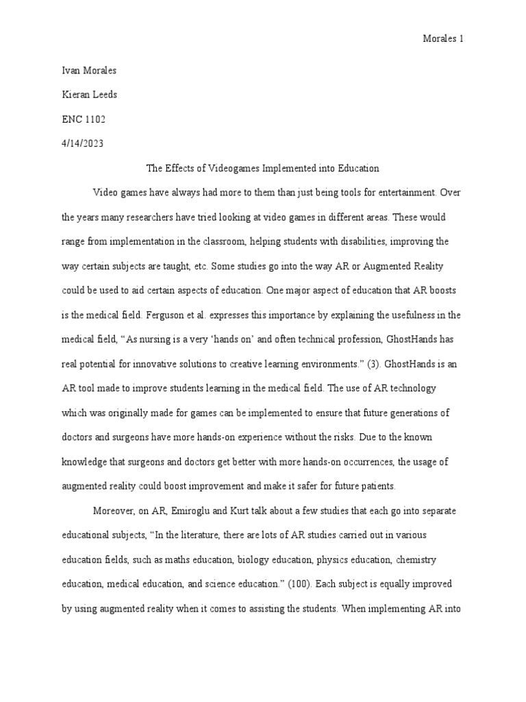 games can affect cognition and behavior” (763). The authors explain their viewpoints and give