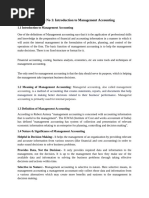 This units deals with Definition, scope, function, importance and limitations of management accounting, distinction between management accounting, financial accounting and cost accounting, role and responsibilities of management accountants .