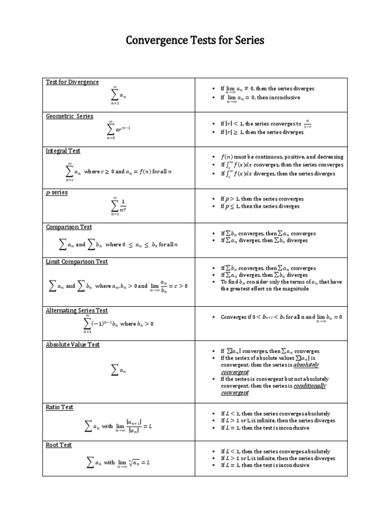 • Int Test: useful if an = f (n), where f is transcendental, continuous, readily integrable