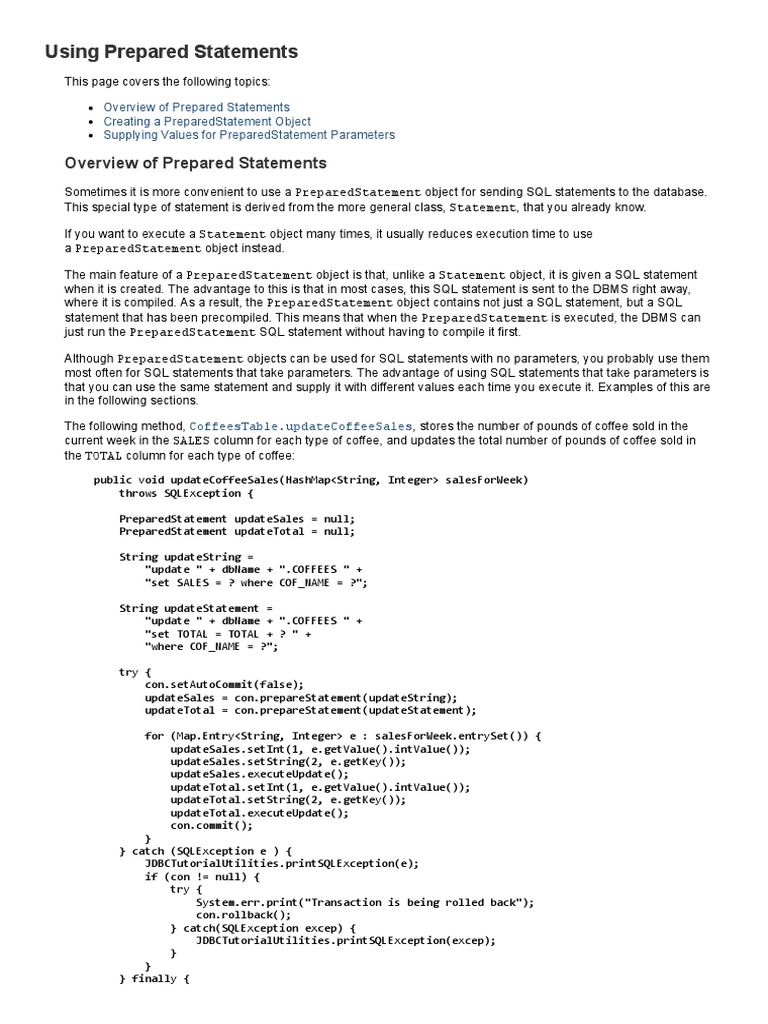 where it is compiled. As a result, the PreparedStatement object contains not just a SQL statement, but a SQL