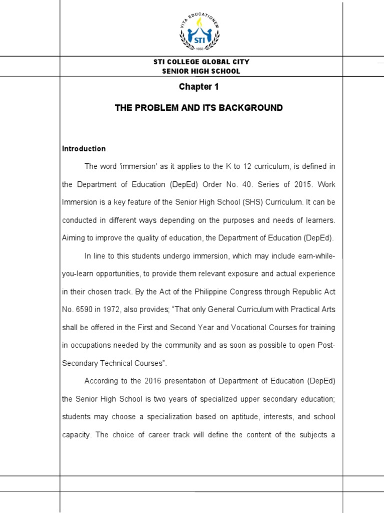The Problem and Its Background: Sti College Global City Senior High School