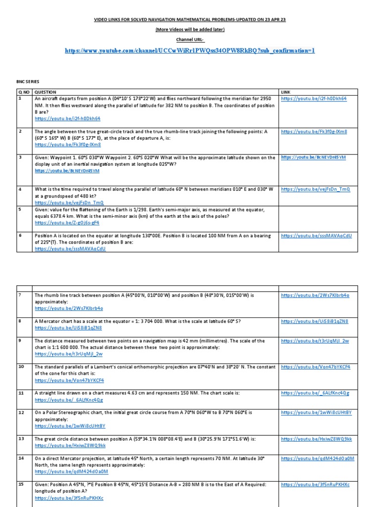 VIDEO LINKS FOR SOLVED NAVIGATION MATHEMATICAL PROBLEMS-UPDATED ON 23 APR 23