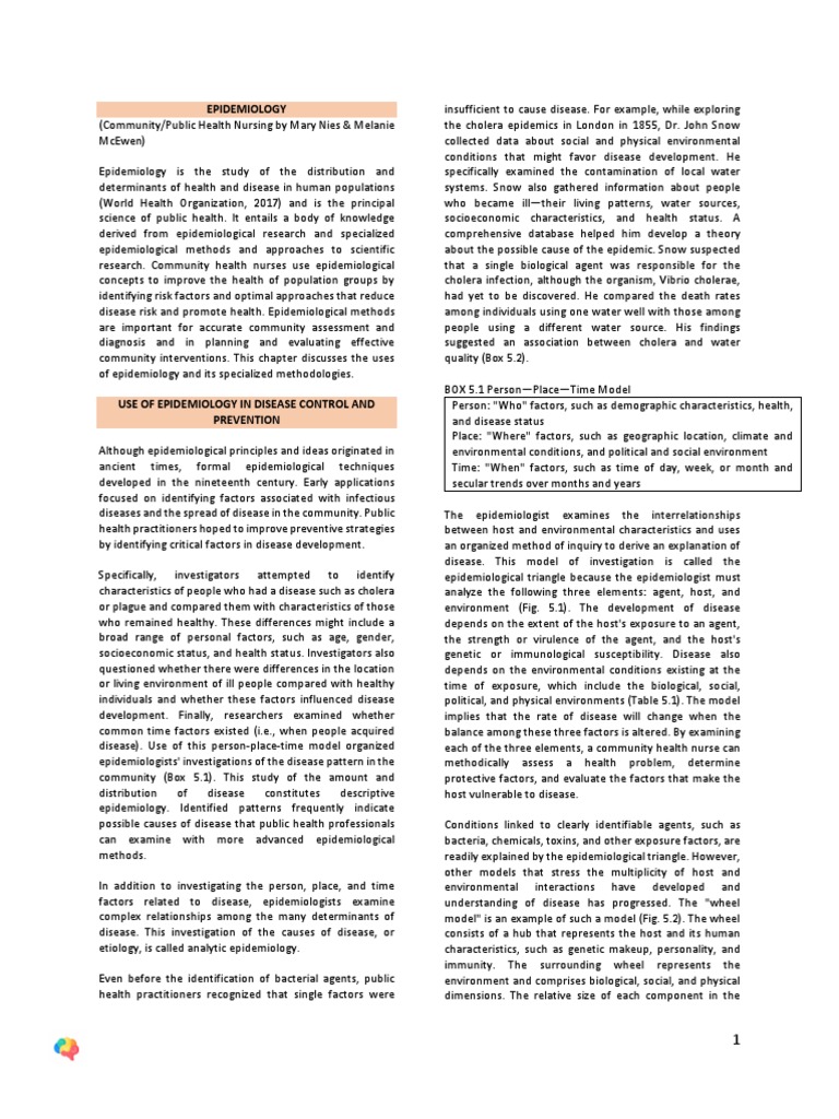 heredity. Origins of other health conditions may be more He analyzed the distribution of person, place, and time