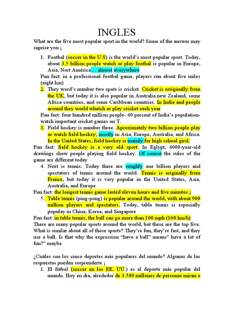 1. El fútbol (soccer en los EE. UU.) es el deporte más popular del
