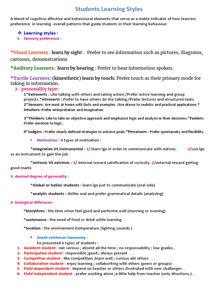 ❖ Learning styles :