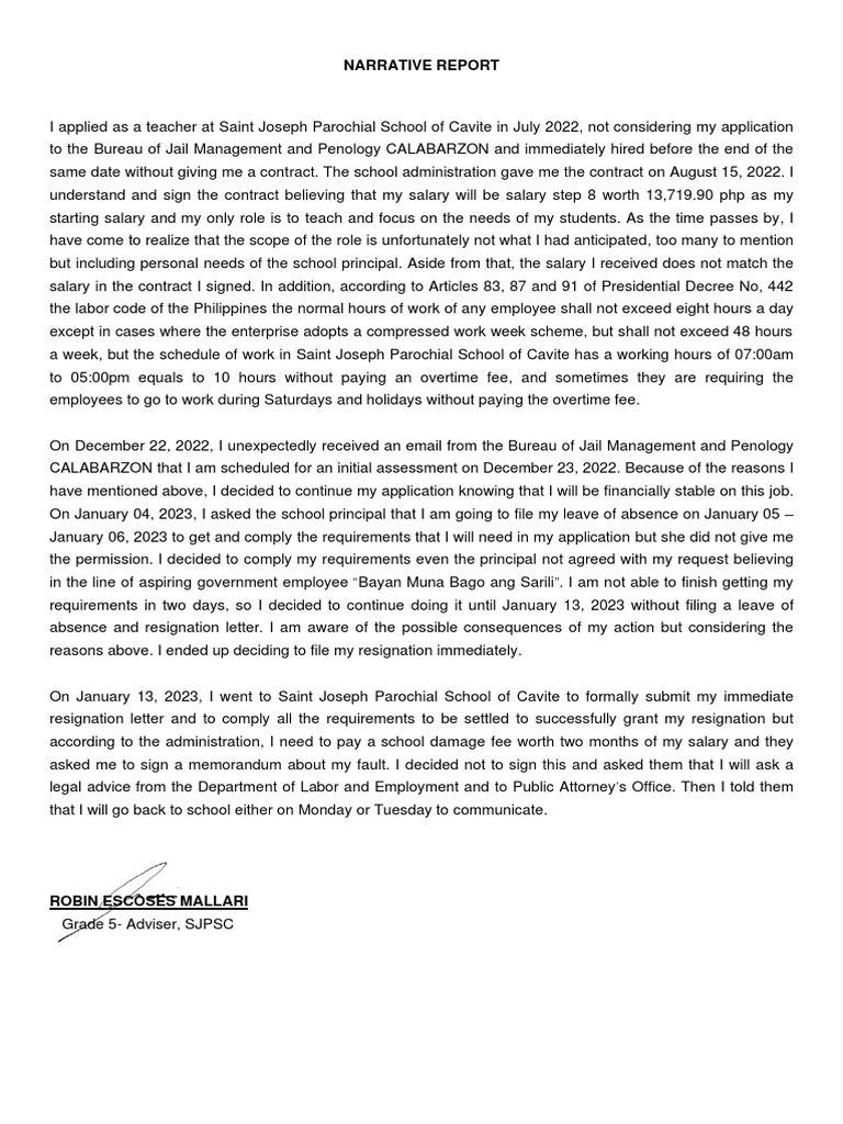 On January 13, 2023, I went to Saint Joseph Parochial School of Cavite to formally submit my immediate