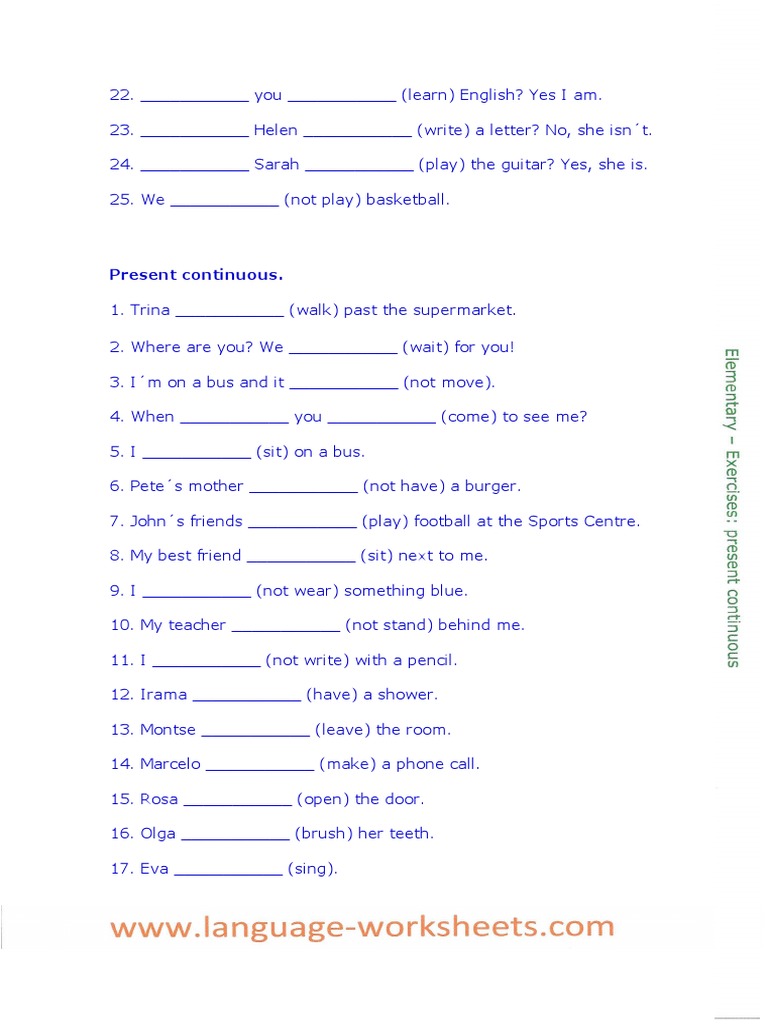 22. ___________ you ___________ (learn) English? Yes I am.
