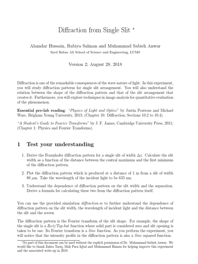 Ware, Brigham Young University, 2013; (Chapter 10: Diffraction; Sections 10.2 to 10.4).
