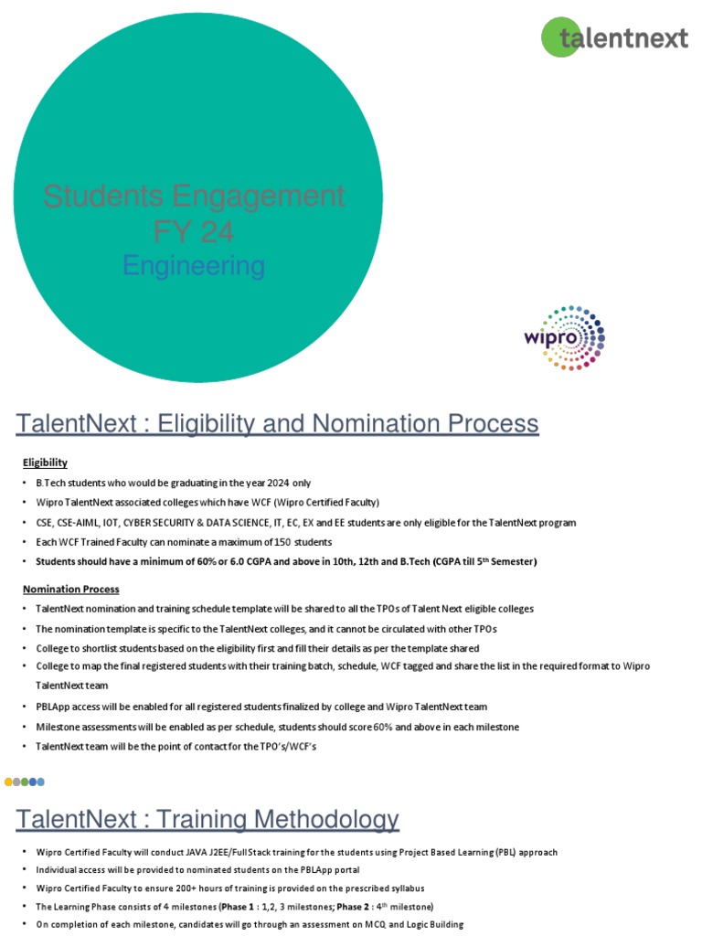 • PBLApp access will be enabled for all registered students finalized by college and Wipro TalentNext team