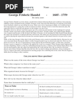 1. _____ George II A. One of Handel’s most famous oratorios