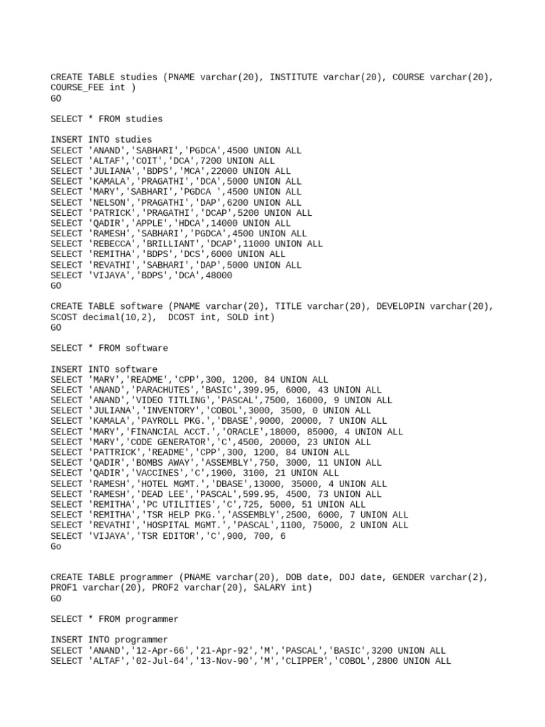 SELECT 'RAMESH','03-May-67','28-Feb-91','M','PASCAL','DBASE',3200 UNION ALL