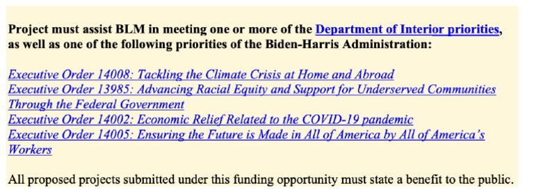 Project must assist BLM in meeting one or more of the Department of Interior priorities,