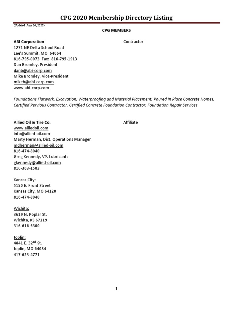 CPG 2020 Membership Directory Listing: CPG Members ABI Corporation