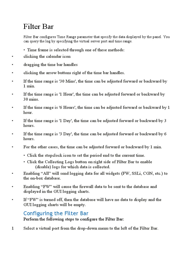 Filter Bar configures Time Range parameter that specify the data displayed by the panel. You