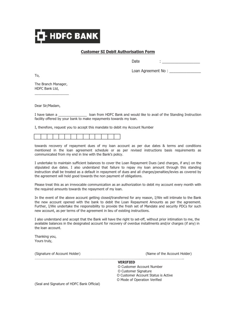 (Seal and Signature of HDFC Bank Official)