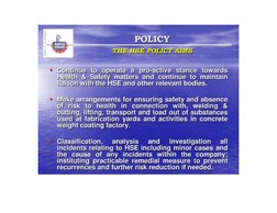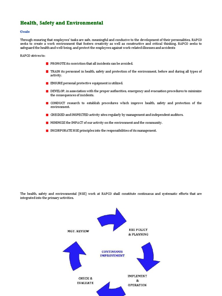 The health, safety and environmental (HSE) work at RAPCO shall constitute continuous and systematic efforts that are