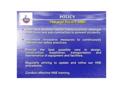 success of RAPCO’s HSE Management System and overall HSE performance. Training