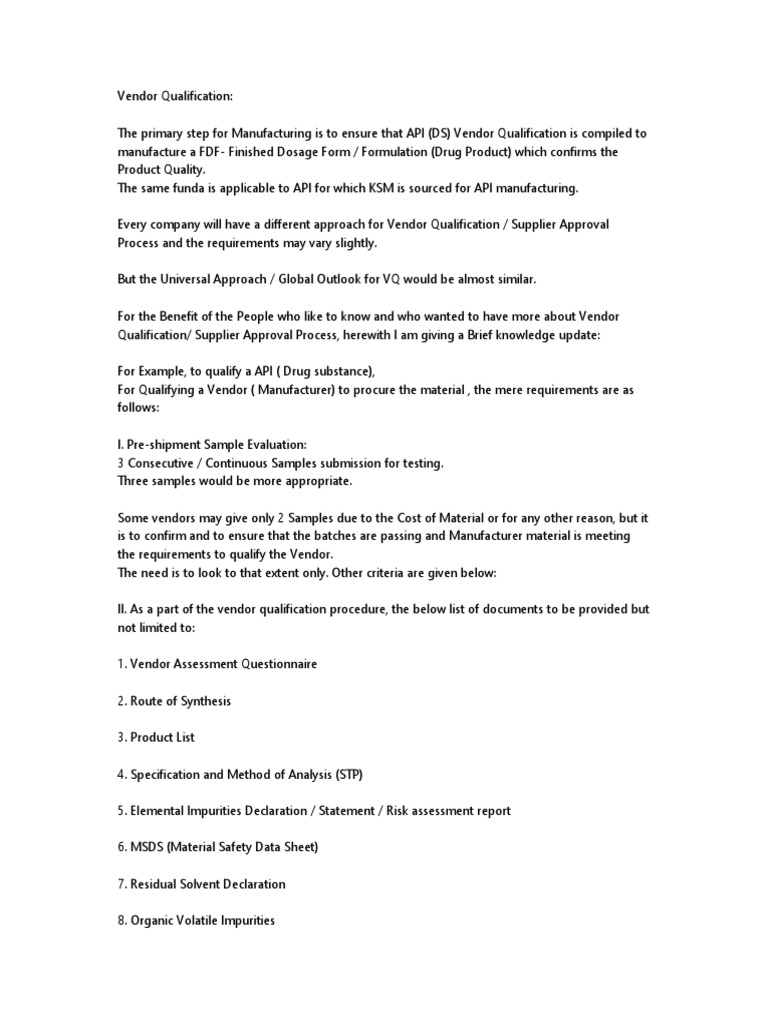 Qualification/ Supplier Approval Process, herewith I am giving a Brief knowledge update: