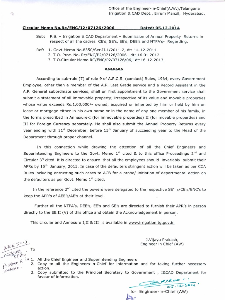 Sub: P.S. ~ Irrigation & CAD Department ~ Submission of Annual Property Returns in
