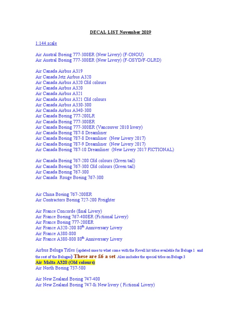 aircraft listed in my 1:200 scale sections the others 1:144 scale decals can be printed for