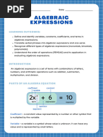 An ALGEBRAIC EXPESSION is an expression that contains numbers, operations and one or