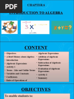 Alisais, J. (2014). Evaluating Algebraic Expression. Retrieved from https://www.slideshare.net/