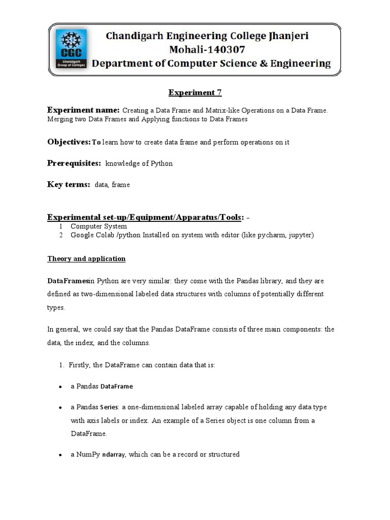 Objectives:To learn how to create data frame and perform operations on it