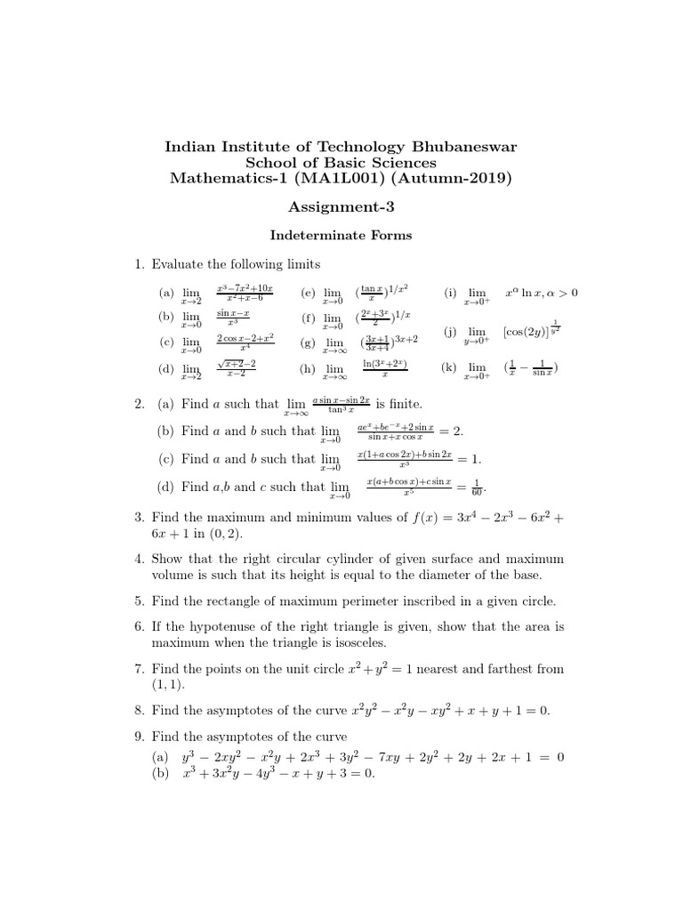 Mathematics-1 (MA1L001) (Autumn-2019)