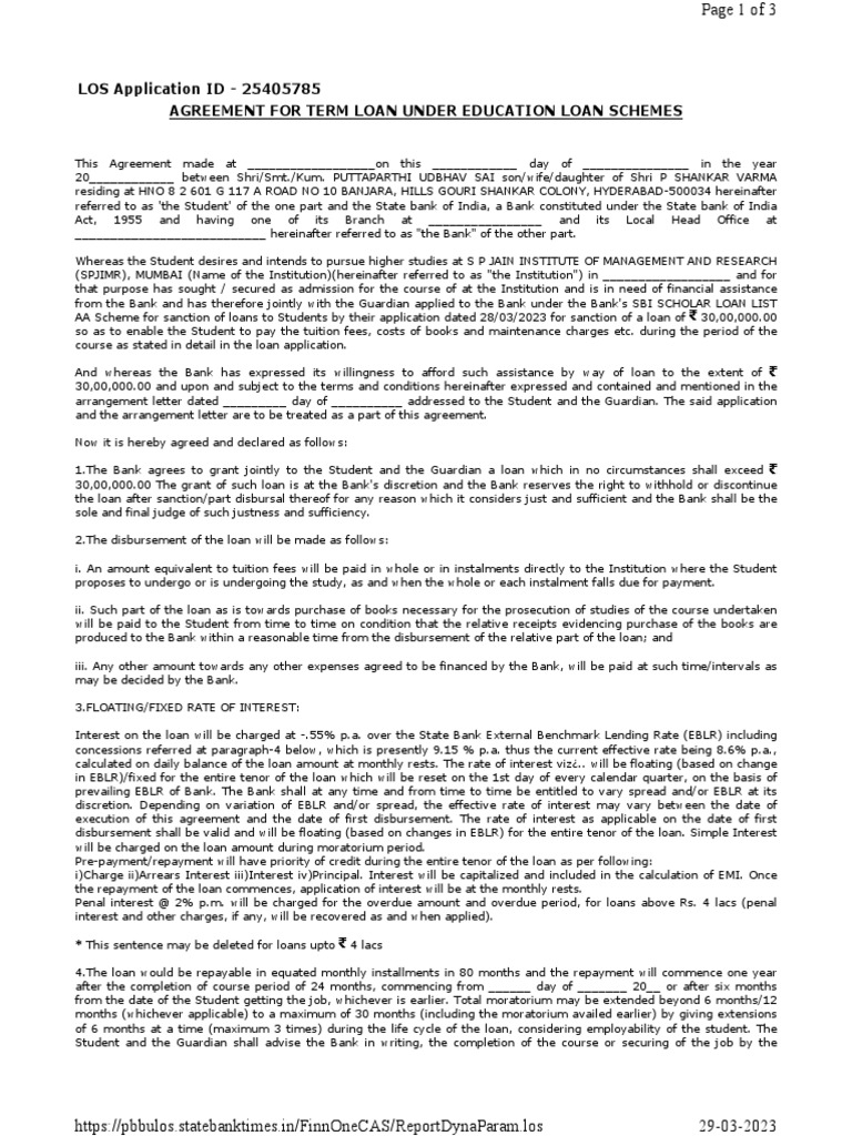 Whereas the Student desires and intends to pursue higher studies at S P JAIN INSTITUTE OF MANAGEMENT AND RESEARCH