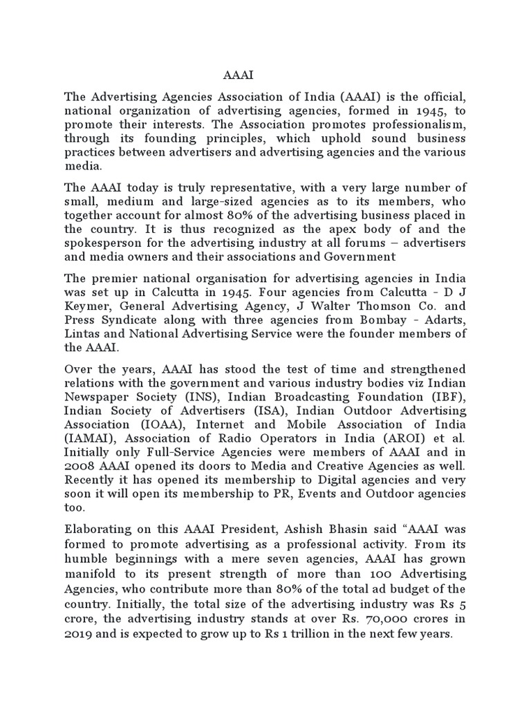 The Advertising Agencies Association of India (AAAI) is the official,