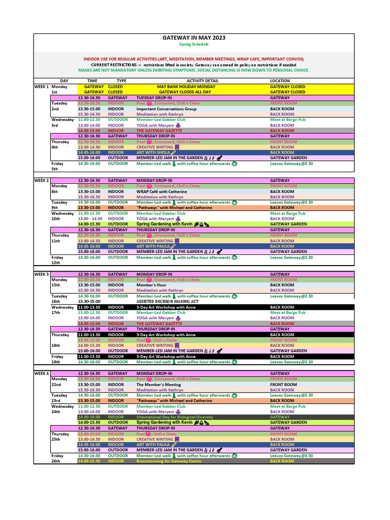 WEEK 1 Monday GATEWAY CLOSED MAY BANK HOLIDAY MONDAY GATEWAY CLOSED