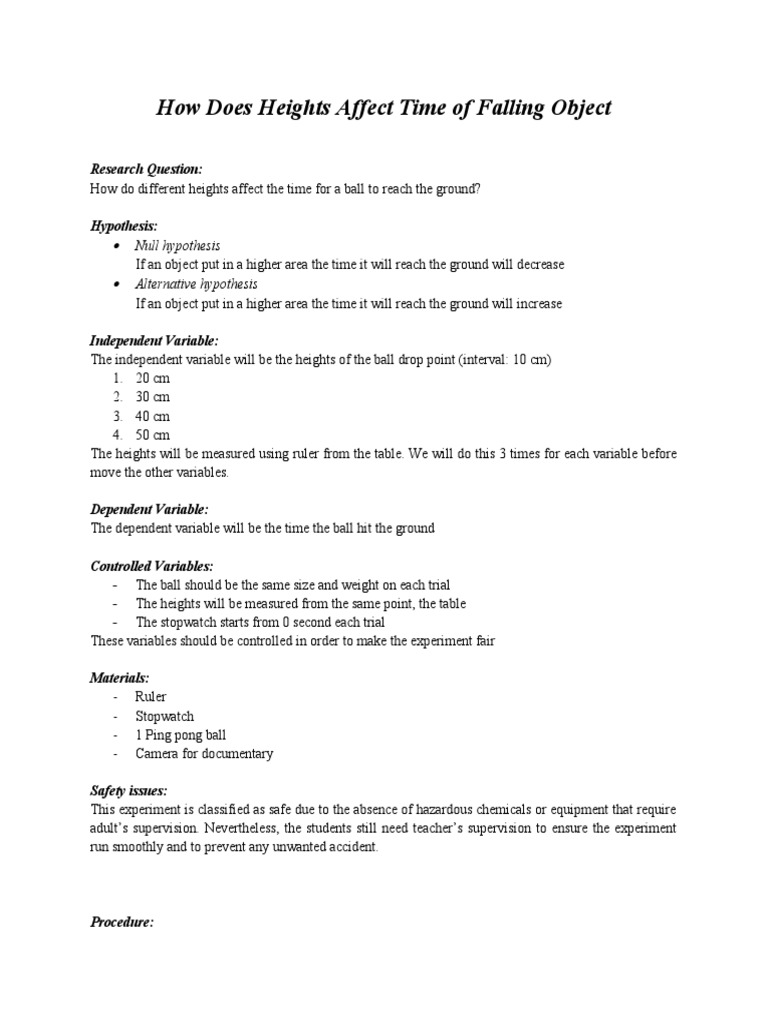 The independent variable will be the heights of the ball drop point (interval: 10 cm)